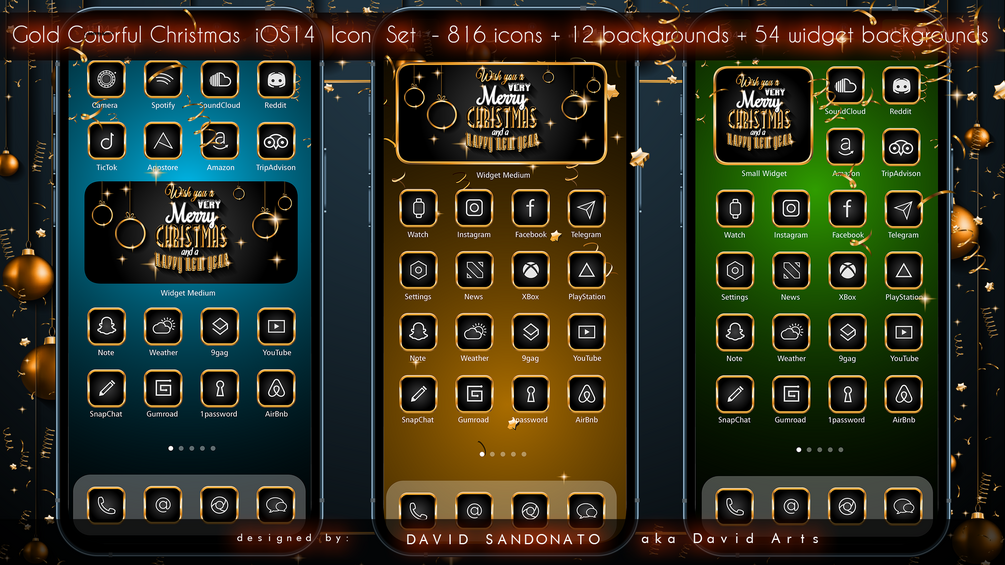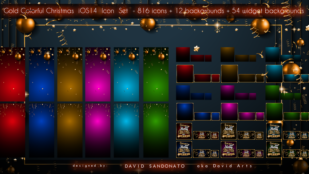 Gold Colorful Christmas iOS14 Icon Set - 816 icons + 12 backgrounds + 54 widget backgrounds