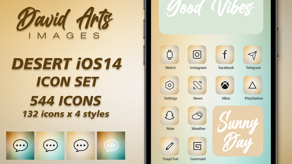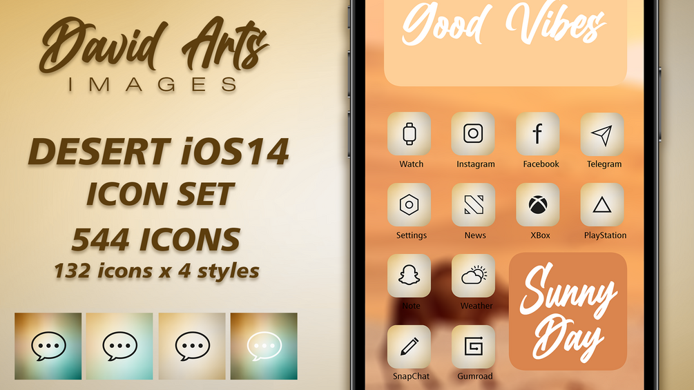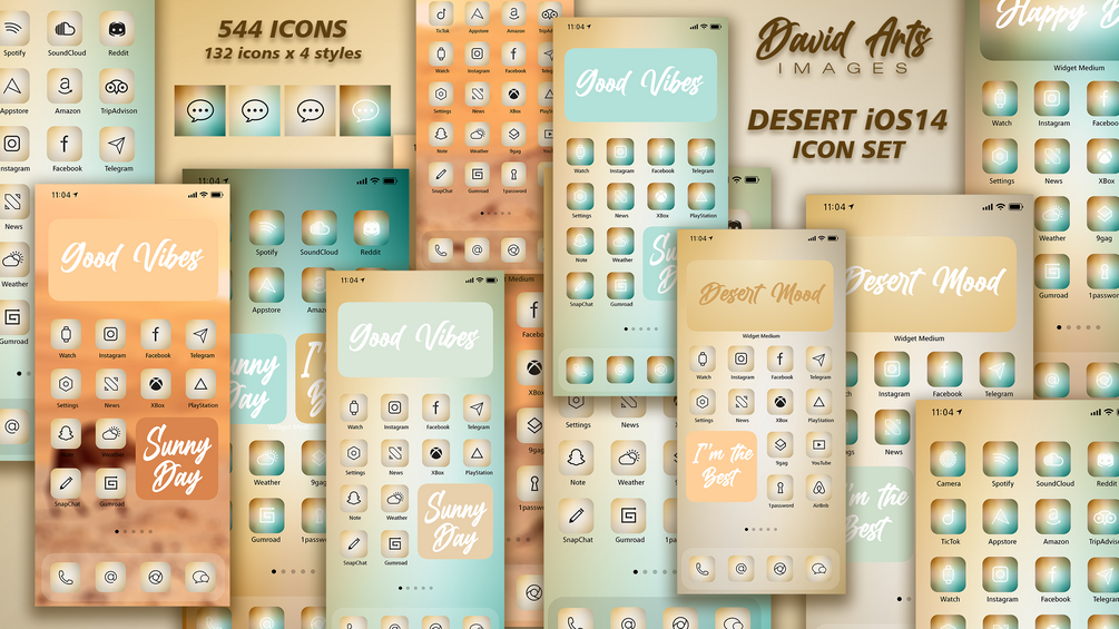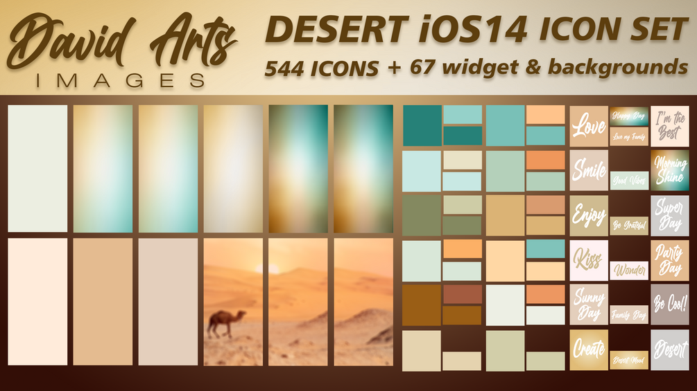This Desert iOS14 Icon set will provide all you need to create a soft hot atmosphere with cream and beige tones with a touch of green.