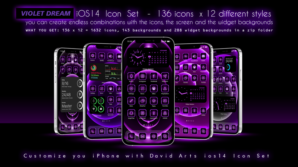 Violet Dream iOS14 Icon Set 1632 Icons - 12 different Styles for iPhone homescreen customization | Aesthetic | Widget Smith | Photo Widgets