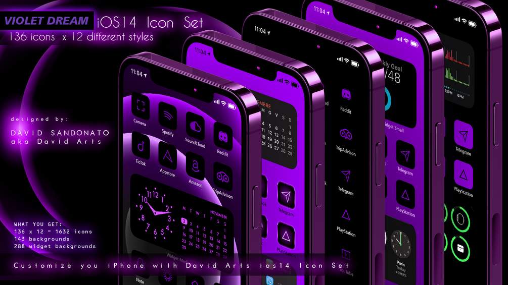 I have designed this beautiful VioletDream Icon set pack expecially for the new iPhone 12 Pro powered by iOS14. (Please note that this is a BIG pack of 12 set and very soon every single set will be published here as single product available for purchase).